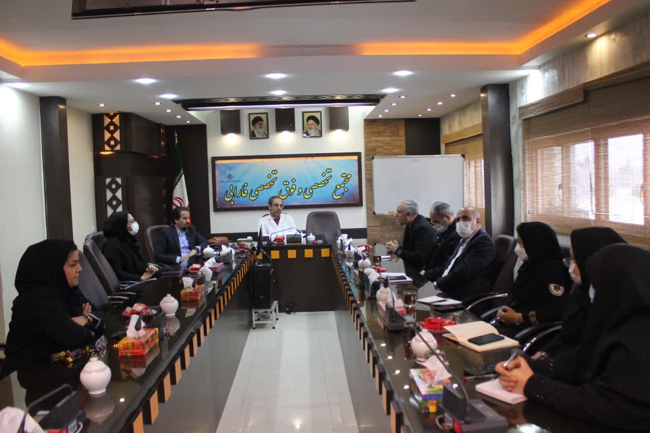 در شروع جلسه جناب اقای دکتر محمدبیگی رئیس مجتمع تخصصی و فوق تخصصی فارابی ورود میهمانان را خیرمقدم گفته و به معرفی مختصر بیمارستان از جمله سابقه تاسیس ، بخش های فعال خدمت رسانی ، تعداد تخت و گزارش کوئتاهی از طرح توسعه بیمارستان پرداختند.